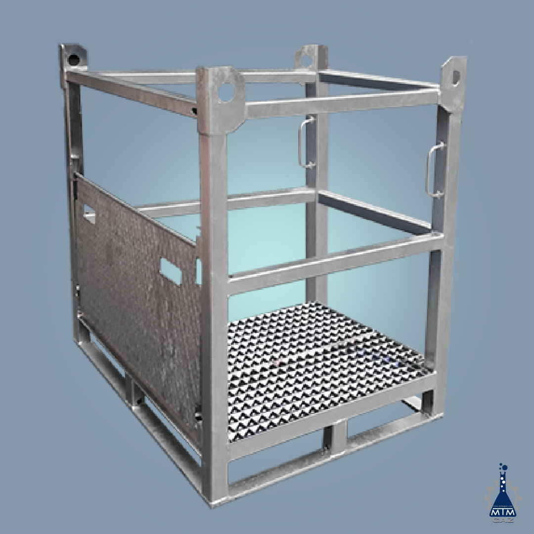 Tüplerinin iş güvenliğine uygun şekilde taşıma ve stoklama yapılabilmesi için tasarlanan tüp taşıma sepetleri, tüplerin rahat yüklenmesi ve indirilmesi için yükleme rampalı olarak üretilmektedir. Bu rampa kolay bir açma kapama sistemine sahip olup aynı zamanda kapak görevi görmektedir.